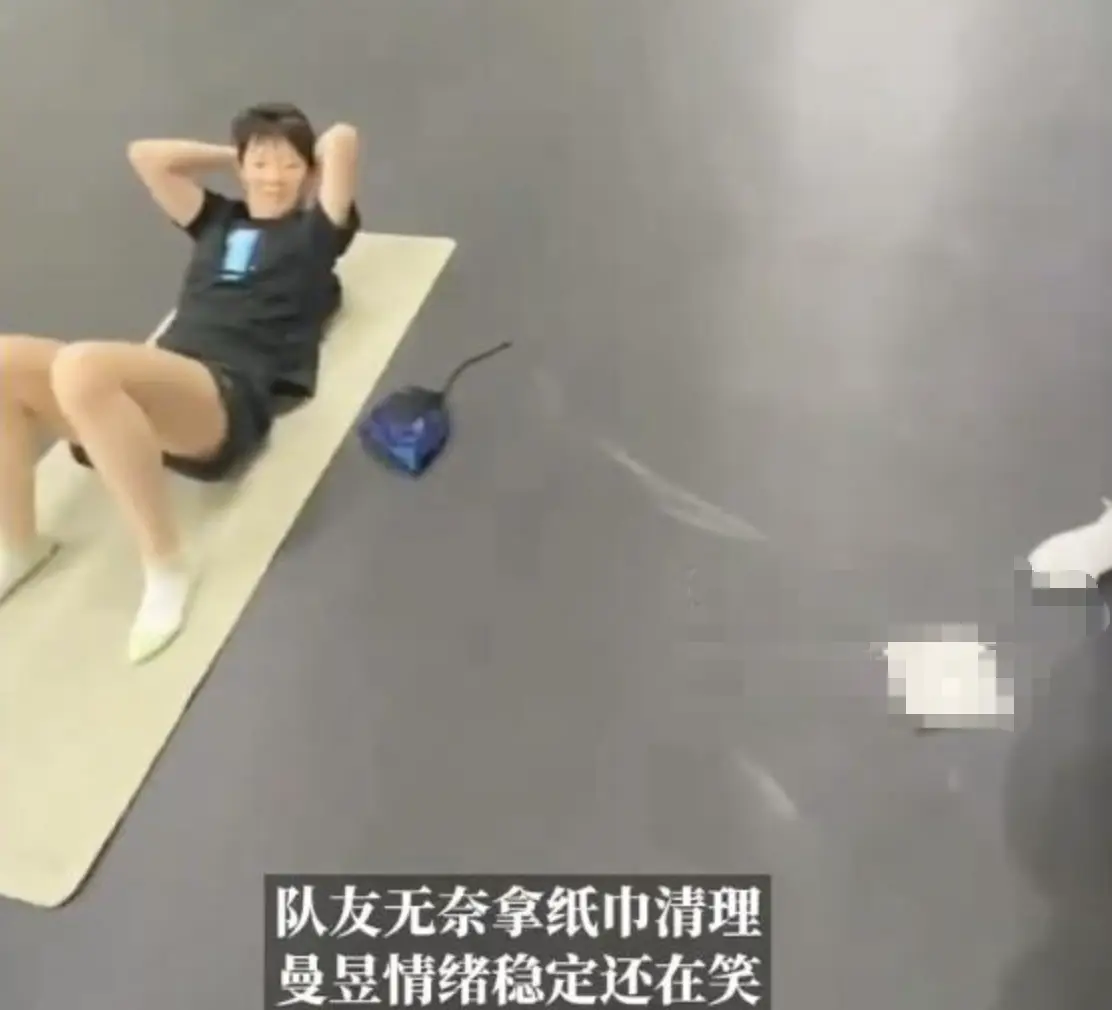 王曼昱训练时,场馆天花板突然掉下鸟粪。