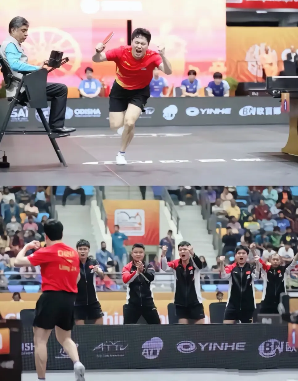 王楚钦也是刚打完中国大满贯三项比赛,连轴转直接飞赴印度,黑眼圈都挡不住。